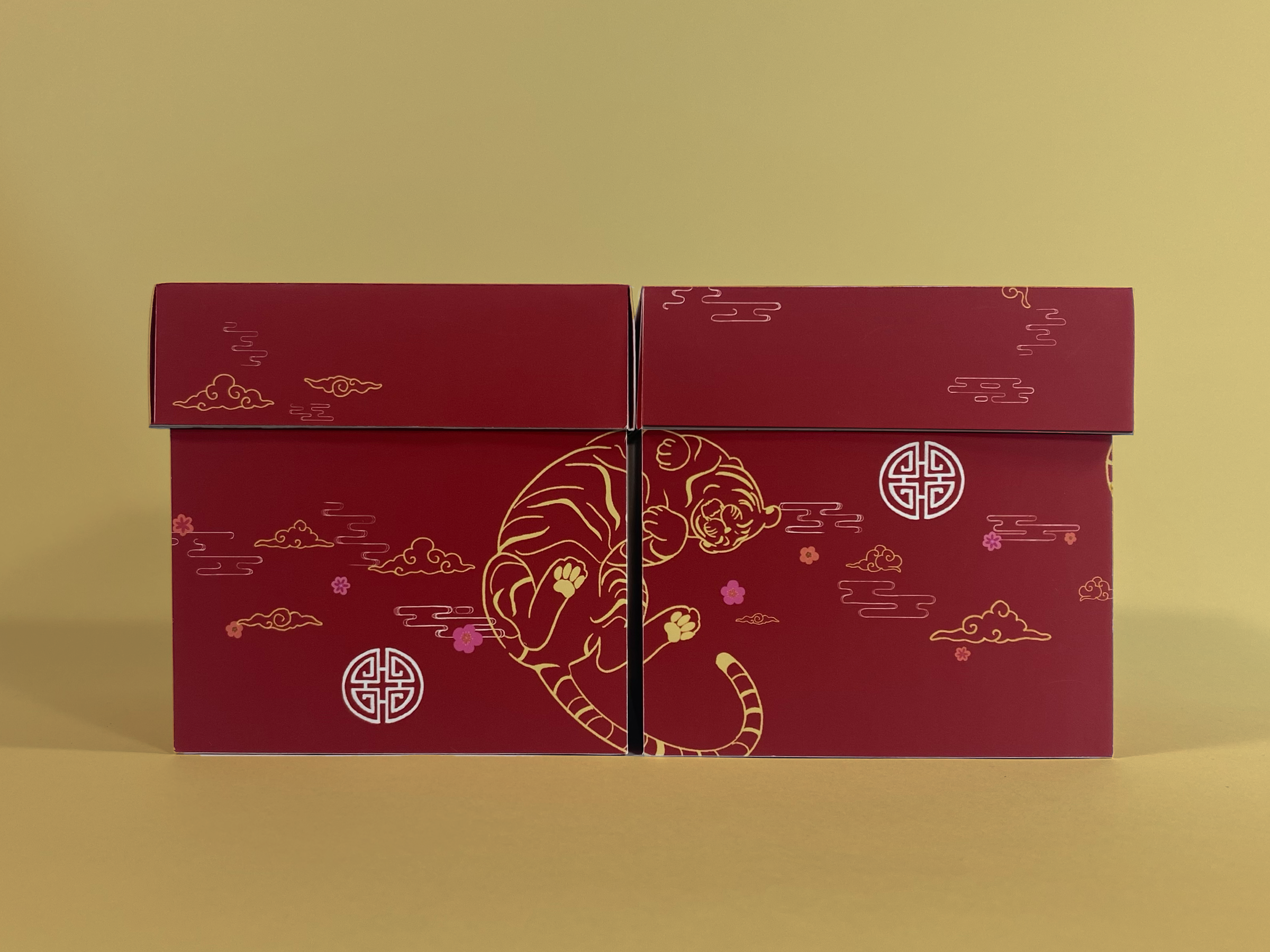 Traditional Chinese elements such as lanterns, clouds, coins, and tigers adorn the packaging, honoring cultural heritage. Thoughtfully integrated die cuts and hidden illustrations provide an engaging, interactive experience when unveiling the box.